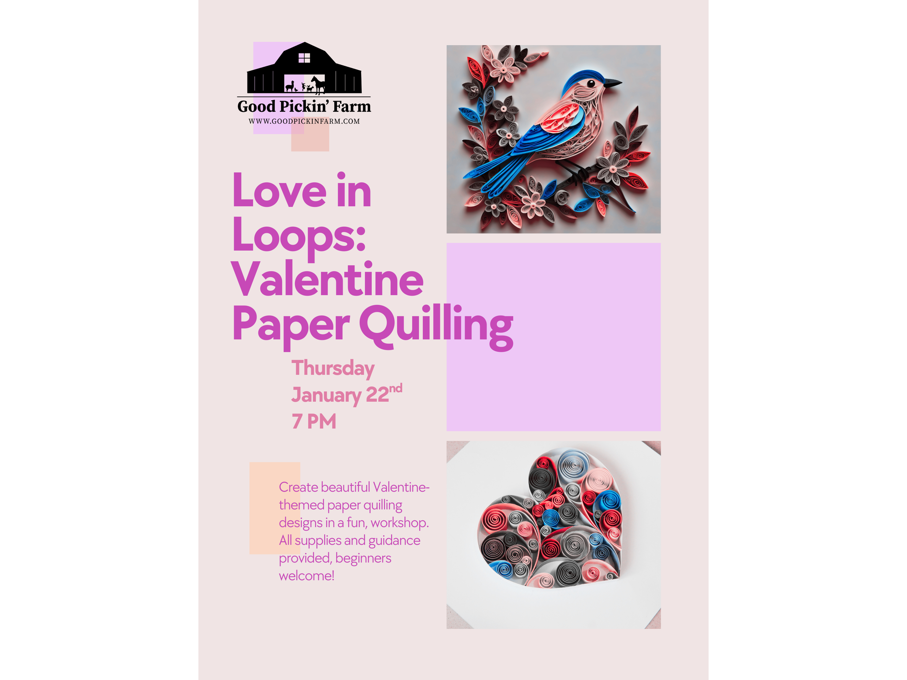 Bring your favorite beverage, relax with friends, and have fun turning curled paper into hearts, flowers, and sweet Valentine designs.