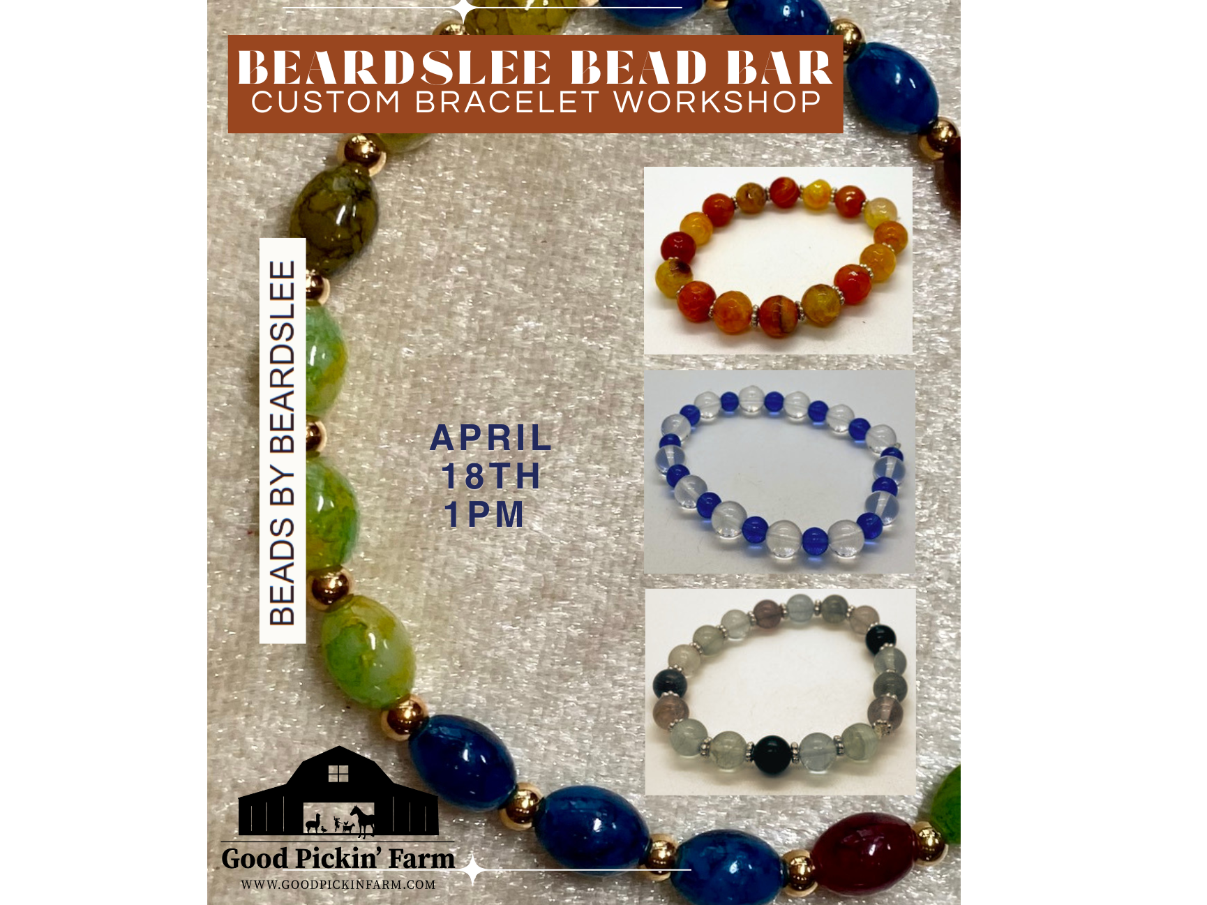 Join us in the farmhouse for a relaxed, hands-on bracelet-making experience led by Sarah of Beads by Beardslee.