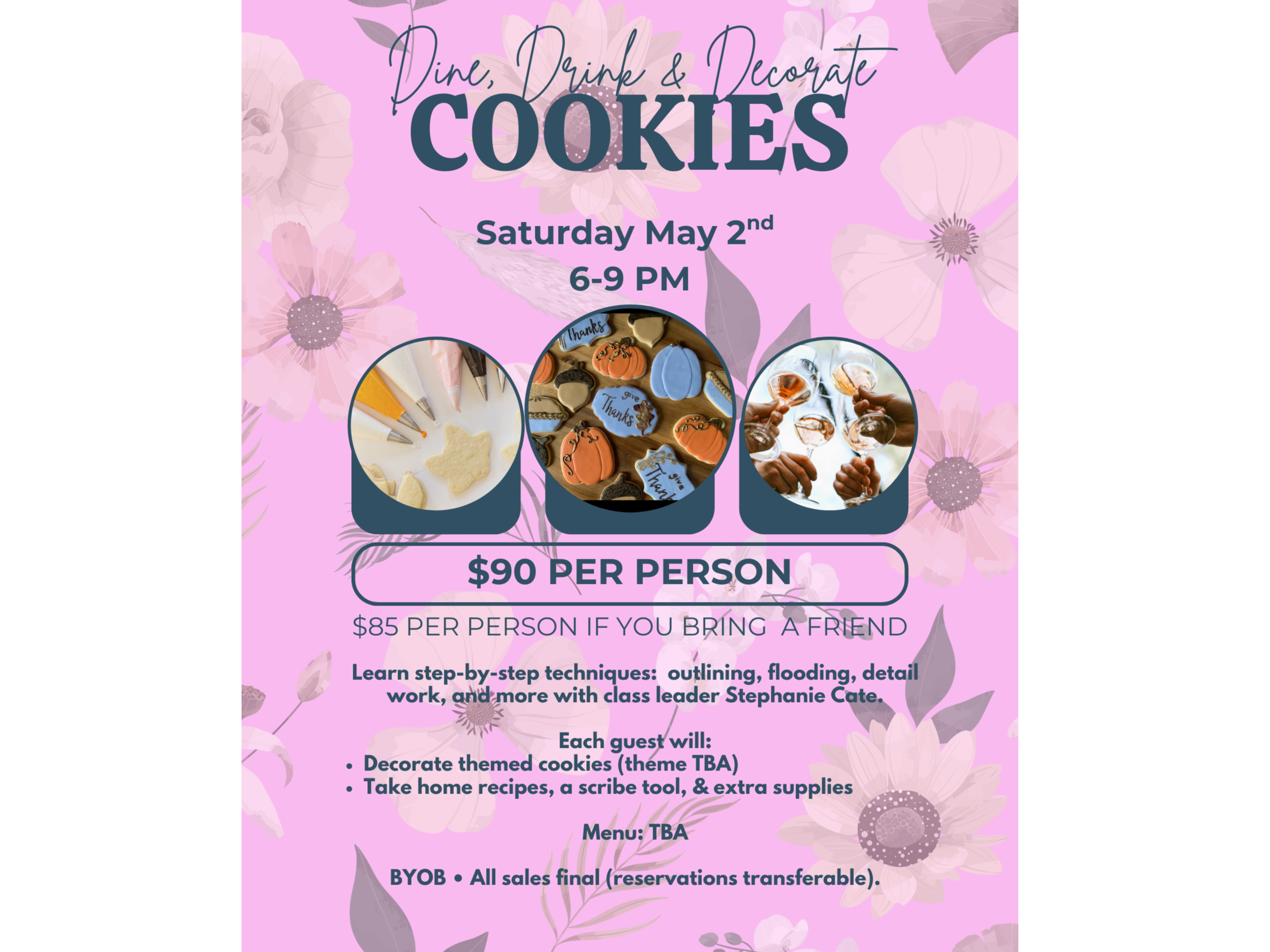 Join class leader & local baker, Stephanie Cate in her 3rd installment of her Dine, Drink & Decorate series.